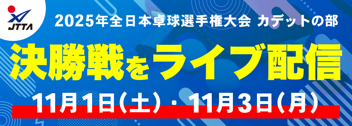 TV・メディア情報 2025.10.29JOCジュニアオリンピックカップ 2025年全日本卓球選手権大会(カデットの部):各種目決勝戦を卓球TVにてライブ配信 -