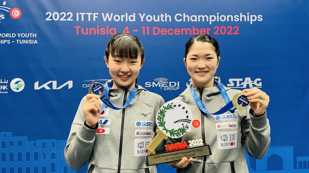 大会・試合 2022.12.12 ITTF世界ユース選手権チュニス大会 閉幕 2022年12月4日(日)からチュニジアで開催されていたITTF世界ユース選手権が閉幕。 U19女子シングルスでは木原美悠が優勝、U19女子ダブルスでは木原美悠・張本美和ペアが優勝、U15男子シングルスでは吉山和希が準優勝するなど各種目にて多くのメダルを獲得しました。 大会情報・日本人選手記録 → こちら 前の記事へ 新しい記事へ