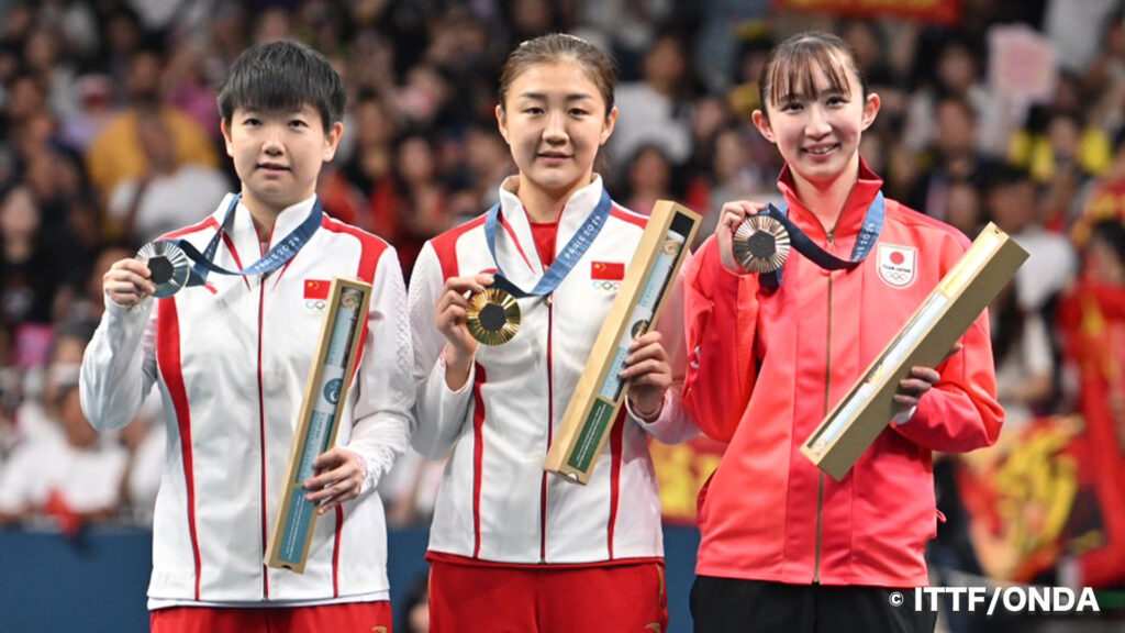 3位決定戦後に行われた女子シングルス決勝戦では孫穎莎と陳夢の中国勢対決を陳夢が制して金メダル獲得。準決勝で早田を破った孫穎莎が銀メダルを手にしている。