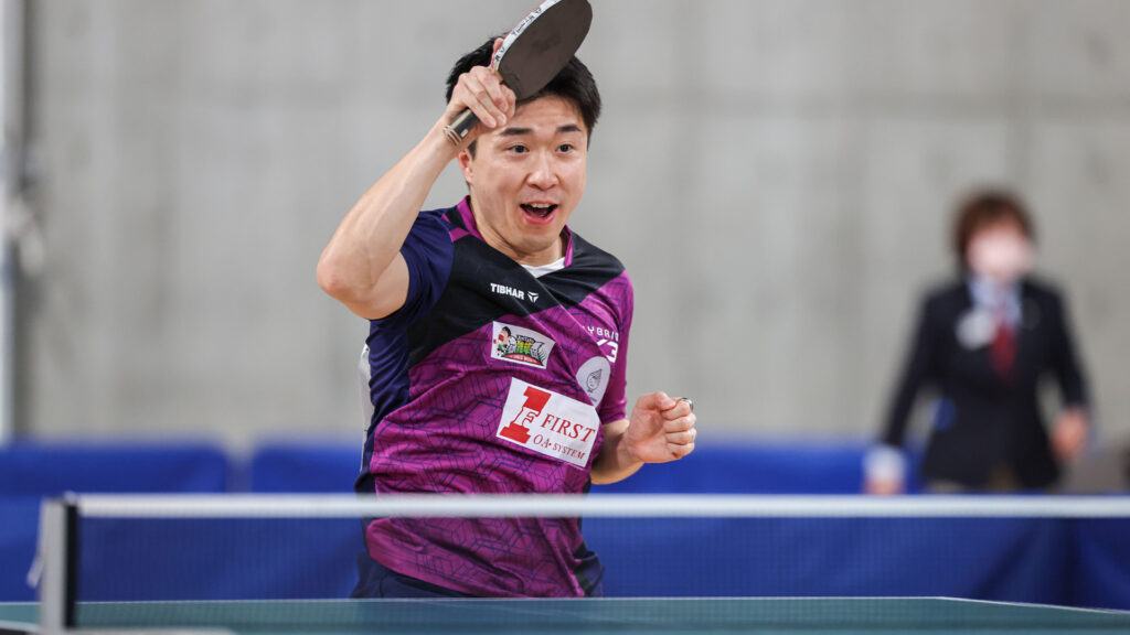 大会初日から白熱している男子シングルスの3回戦は、注目の対戦カードでは神巧也(ファースト・千葉)と木造勇人(関西卓球アカデミー・埼玉)の試合がフルゲームの大激戦にもつれ込み、7-10から4度のマッチポイントを凌いだ神がゲームカウント3-2で勝利をもぎ取った。