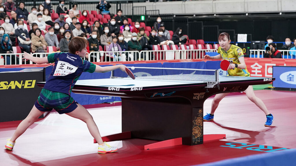 早田ひな(日本生命・福岡)と芝田沙季(ミキハウス・大阪)が対決した試合は早田が序盤から順調に得点を重ねて3ゲームを先取、第4ゲームこそ芝田に奪われたものの、第5ゲームを取ってゲームカウント4-1で勝利している。