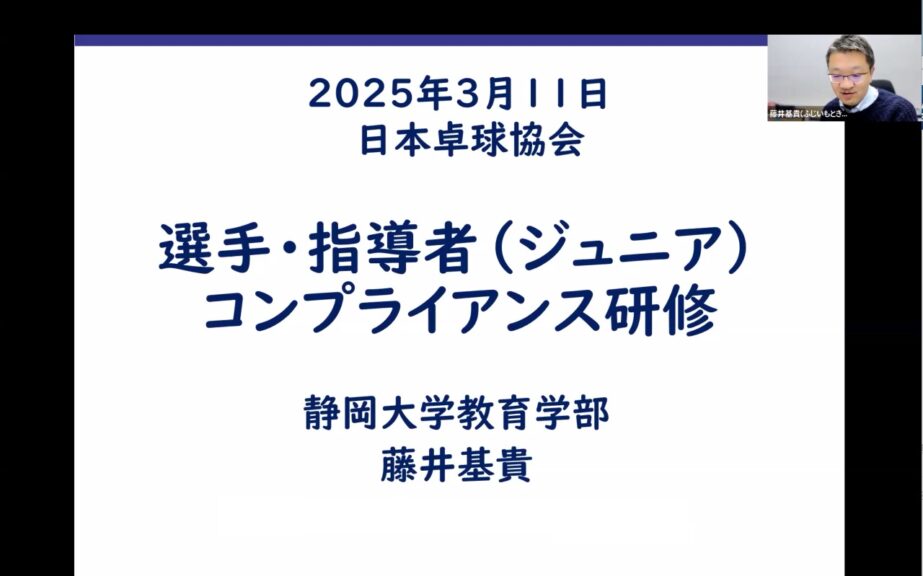 日本卓球協会強化本部はJNT選手(ジュニアナショナルチーム)および JNT/HNTスタッフを対象にコンプライアンス研修をオンラインにて3月11日(火)に実施いたしました。