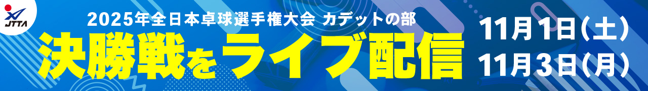 男女ダブルスの決勝戦(2試合)は11月1日(土)、シングルス決勝戦(4試合)は最終日の3日(月・祝)に予定しており、6試合すべてを日本卓球協会が運営する『卓球TV』でライブ配信し、大会終了後は見逃し配信としてアーカイブ配信する予定だ。