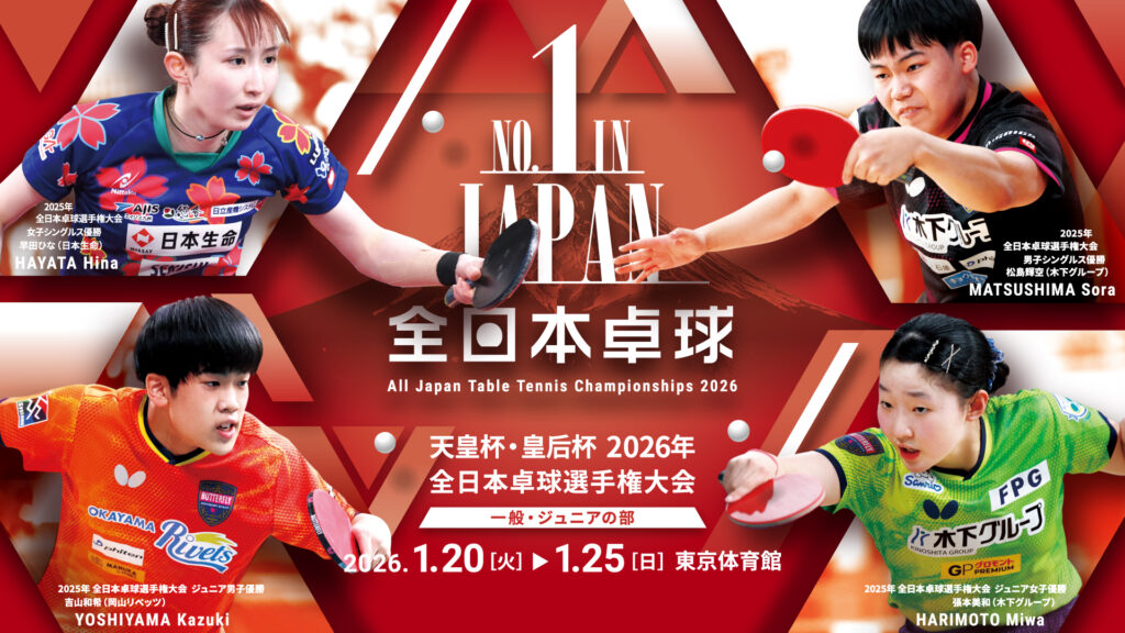 お知らせ 2025.11.18 【チケット情報】天皇杯・皇后杯 2026年全日本卓球選手権大会(一般・ジュニアの部) 「天皇杯・皇后杯 2026年全日本卓球選手権大会(一般・ジュニアの部)」のチケット情報を公開しました。 チケット情報は「大会特設ページ」からご覧いただけます。 チケットの発売は12月6日(土) 10時からを予定しております。 前の記事へ 新しい記事へ