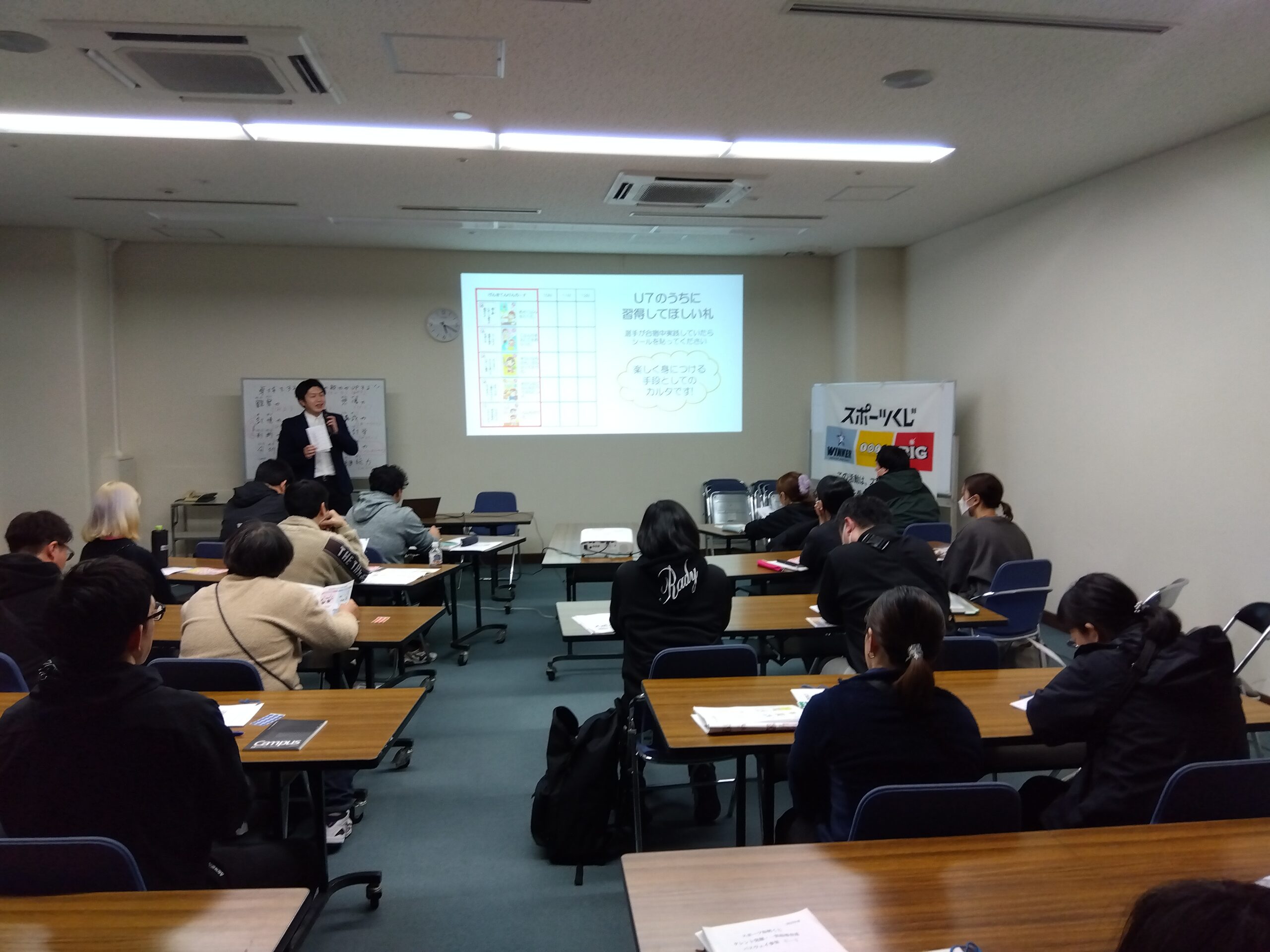 U-7では、総勢20名が参加し、最終順位決定までの試合を行いました。また、「オリンピアン講話」、「技術講義」、「ウォーミングアップ(ダンス)講義」、「こども講義(考える力)」、「栄養講義」、「ハミガキ講習」を各専門講師により実施いたしました。