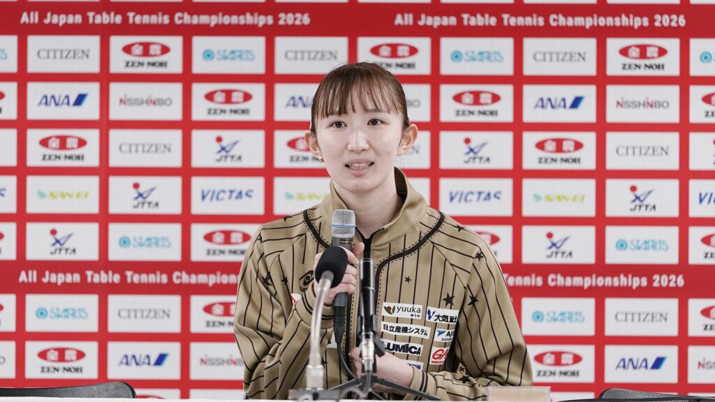『天皇杯・皇后杯 2026年全日本卓球選手権大会(一般・ジュニアの部)』大会2日目の21日(水)に、女子シングルス4連覇がかかる早田ひな(日本生命・福岡)の前回大会優勝者記者会見が行われた。