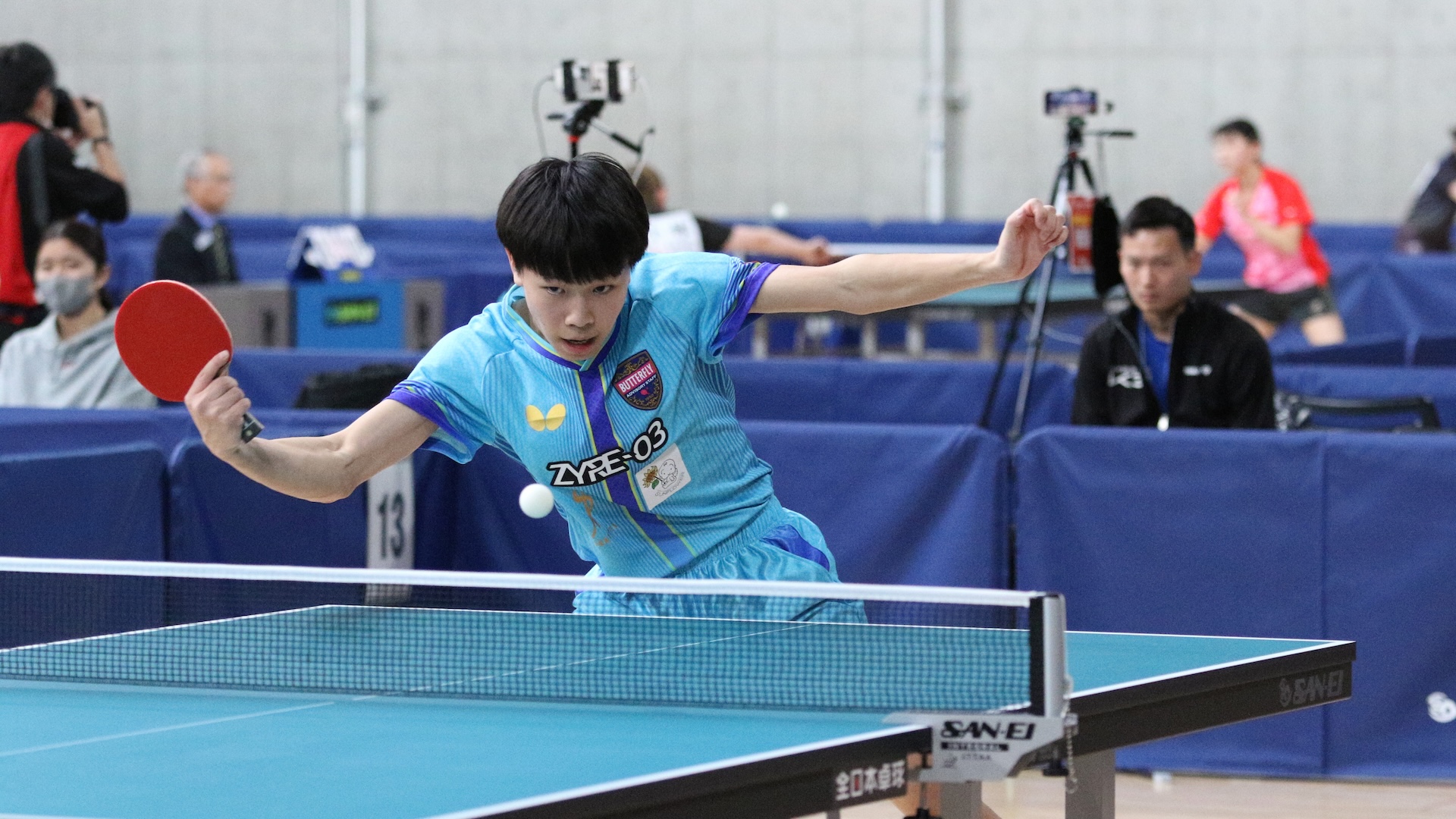 2021年全日本王者の及川瑞基(岡山リベッツ)をゲームオールで振り切って勝ち上がってきた2019年大会3位で前回大会混合ダブルス優勝の木造勇人(関西卓球アカデミー)は、4回戦で前回大会ベスト8の岡野俊介(朝日大)と対戦する。サウスポー同士の戦いを制するのはどちらか。