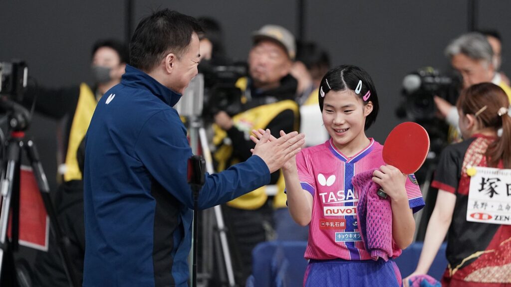 小学生で唯一、一般シングルス2回戦を突破した小学6年の松島美空(田阪卓研・京都)は、3回戦でも大学生を圧倒し、ストレート勝利を収めた。大会3日目となる22日(木)に実施する4回戦では、2023年社会人女王の三村優果(サンリツ・東京)と対戦予定。シニアのトップ選手を相手に、どのような戦いぶりを見せるのか注目が集まる。