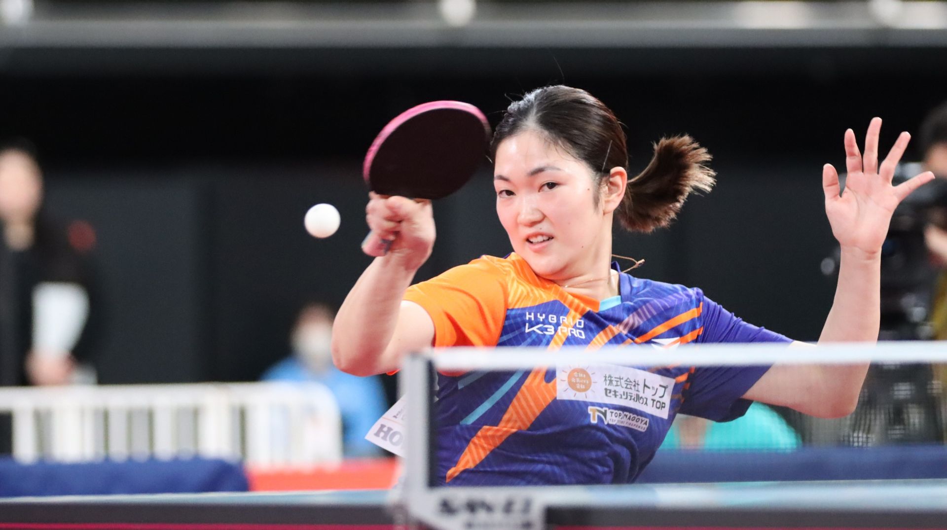 第2シードの張本美和(木下グループ)は、長﨑美柚(木下アビエル神奈川)に1ゲームを先行されるも、2ゲーム目以降は高い集中力を見せて逆転勝利し、準決勝進出を果たした。準決勝では、台上で先手を取り前陣からのパワフルな両ハンドドライブで芝田沙季(日本ペイントグループ)を圧倒した横井咲桜(ミキハウス)と対戦する。見ごたえのあるラリーが繰り広げられるであろう両者の戦いからは、一瞬たりとも目が離せない。