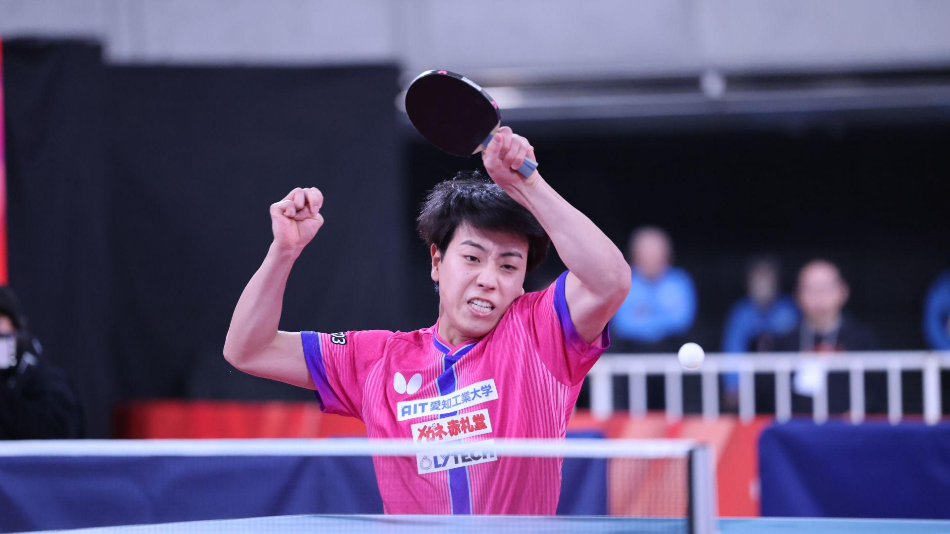 宇田幸矢(協和キリン)との壮絶な打ち合いを制し、準決勝に進出した篠塚は、川上流星(星槎国際高横浜)の高速両ハンドに一歩も引かないラリーを繰り広げ、中陣からの強気の両ハンドで勝利を掴んだ谷垣佑真(愛知工業大)と対戦。昨年の準決勝では篠塚が勝利したが、今年はどちらに勝利の女神が微笑むか。愛知工業大学の同級生である両者の戦いに注目。