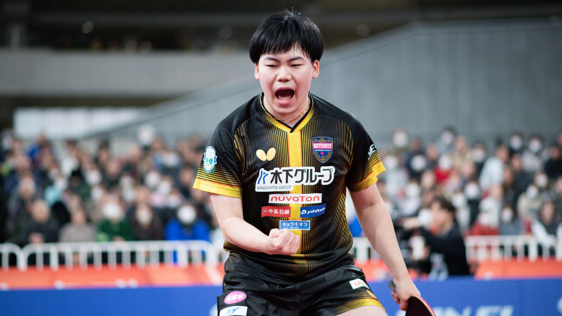 2024年大会の覇者で王座奪還を狙う張本智和(トヨタ自動車・宮城)は準々決勝で木造勇人(関西卓球アカデミー・宮崎)と対戦。張本が第1ゲームを先制するも、第2ゲームは序盤のリードを生かして木造が逃げ切り、さらにデュースにもつれた第3ゲームも木造が奪取する。第4ゲームは押されていた張本がタイムアウトをきっかけに反撃してゲームカウントを2-2とし、第5ゲームも連取。続く第6ゲームは攻撃のリズムをつかんだ木造が制してゲームカウント3-3に追いついた。最終ゲームまでもつれ込んだ対決は張本が11-8で押し切り、準決勝進出を決めている。