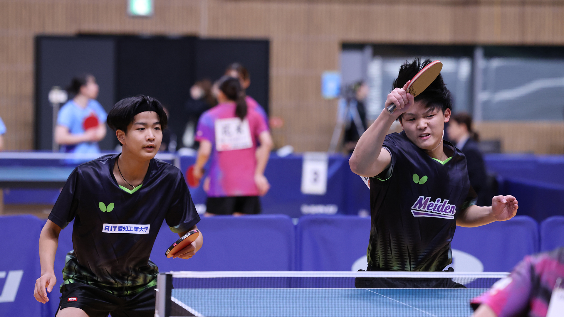 2017年大会3位の木造勇人・松山祐季組(関西卓球アカデミー、クローバー歯科カスピッズ)との激戦を制した溜大河・中谷歩夢組(専修大)は、3回戦で五十嵐史弥・馬渡元樹組(日の出医療福祉グループ)と対戦する。両ペアともフルゲームを制して勝ち上がってきており、激戦が予想される。前回ベスト8の実力社会人ペア上村慶哉・三部航平組(シチズン時計)との4回戦に駒を進めるのはどちらか。