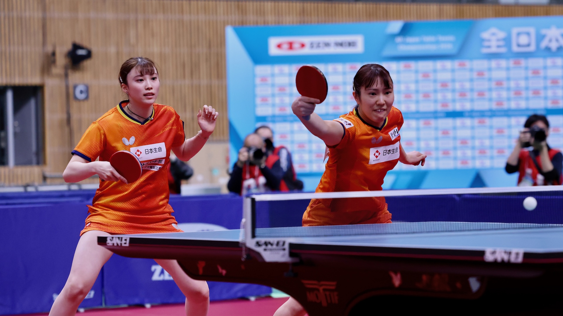 ここまでオールストレート勝利で勝ち上がってきた藤田知子・伊藤詩菜組(愛知工業大)を全く寄せ付けずに準決勝進出を決めた麻生麗名・笹尾明日香組(日本生命)は、平野美宇・木原美悠組(木下グループ、トップおとめピンポンズ名古屋)と対戦する。カットと攻撃の変則ダブルスである佐藤瞳・芝田沙季組(日本ペイントグループ)の粘りを高速プレーで振り切って勝利した平野・木原組を相手に、どのような戦いぶりを見せるのか注目される。
