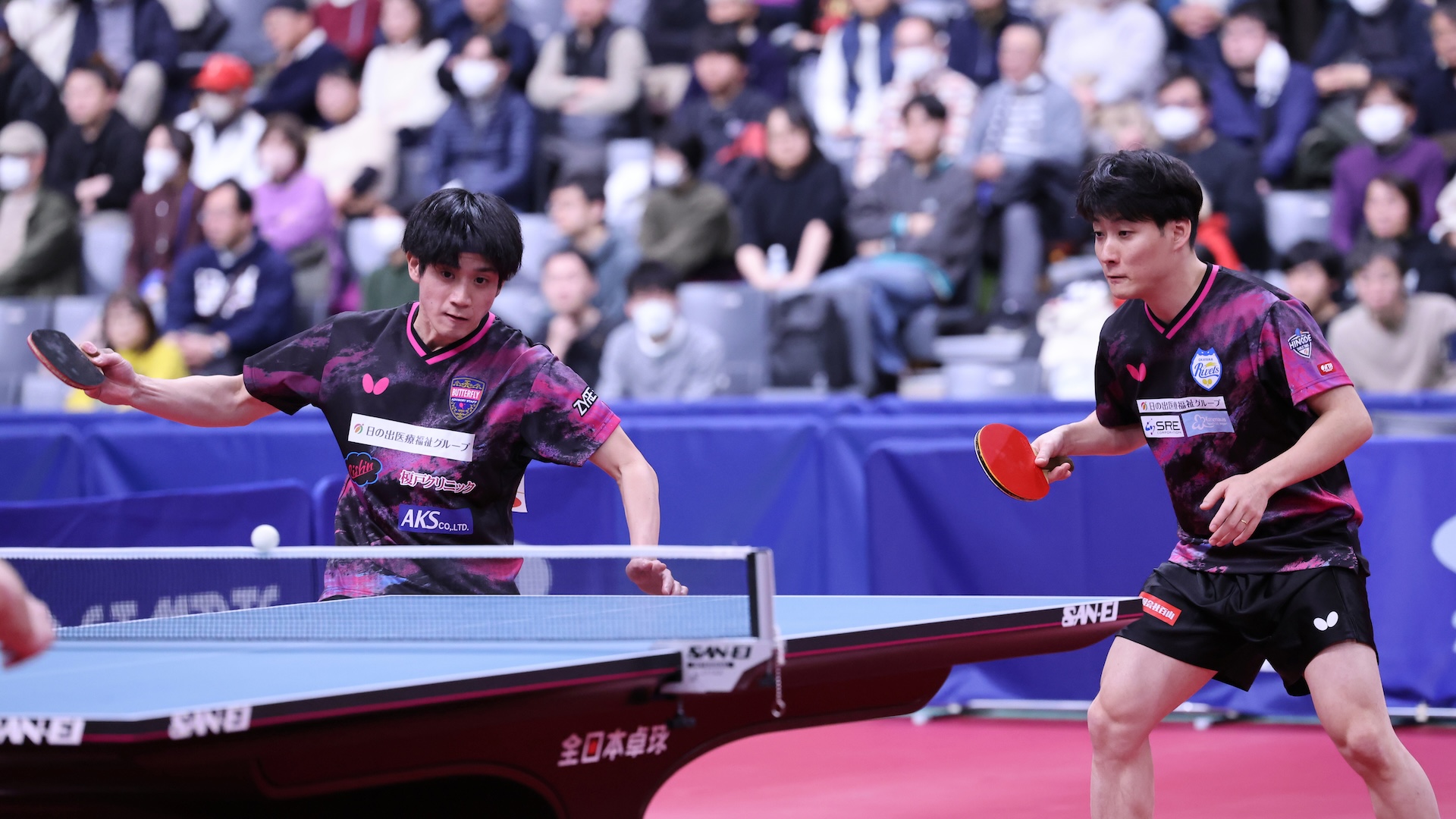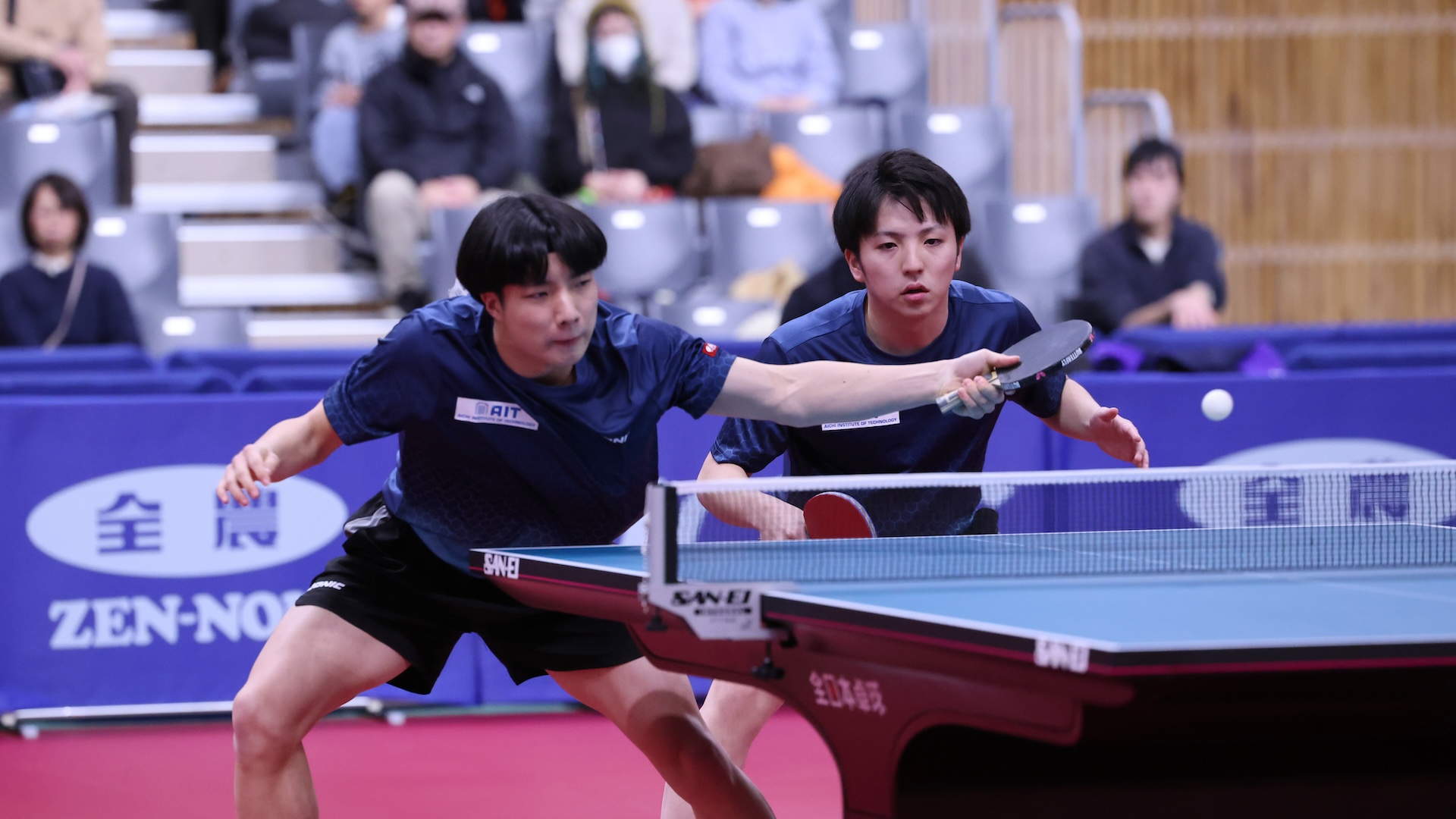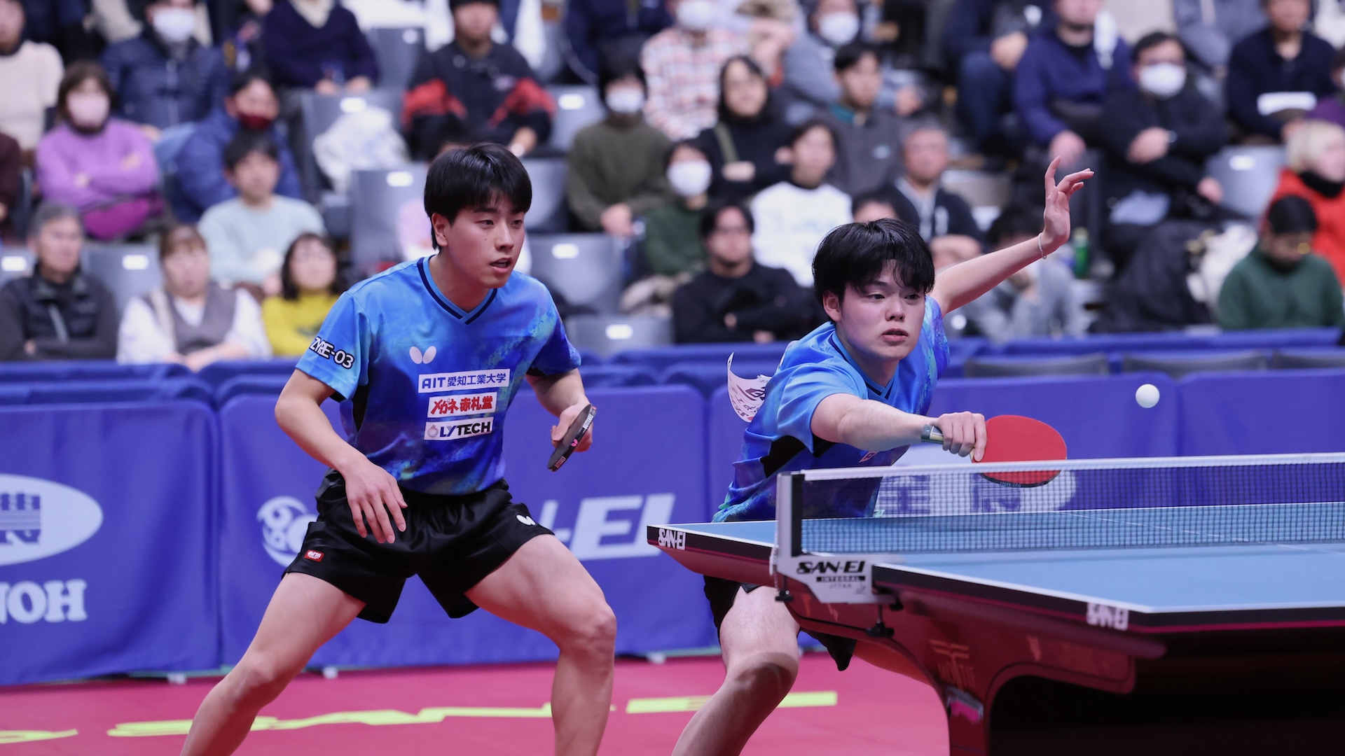 鈴木颯・萩原啓至組(愛知工業大)は松平賢二・宮川昌大組(協和キリン)にストレートで勝利した英田理志・松下大星組(日の出医療福祉グループ)と対戦する。淺津碧利・阿部悠人組(シチズン時計)に対して高い精度の台上プレーで勝利した鈴木・萩原組は、英田の変幻自在のサーブからの三球目攻撃と松下の強烈なチキータレシーブにどのように対応するのか。見ごたえのある試合が予想される。