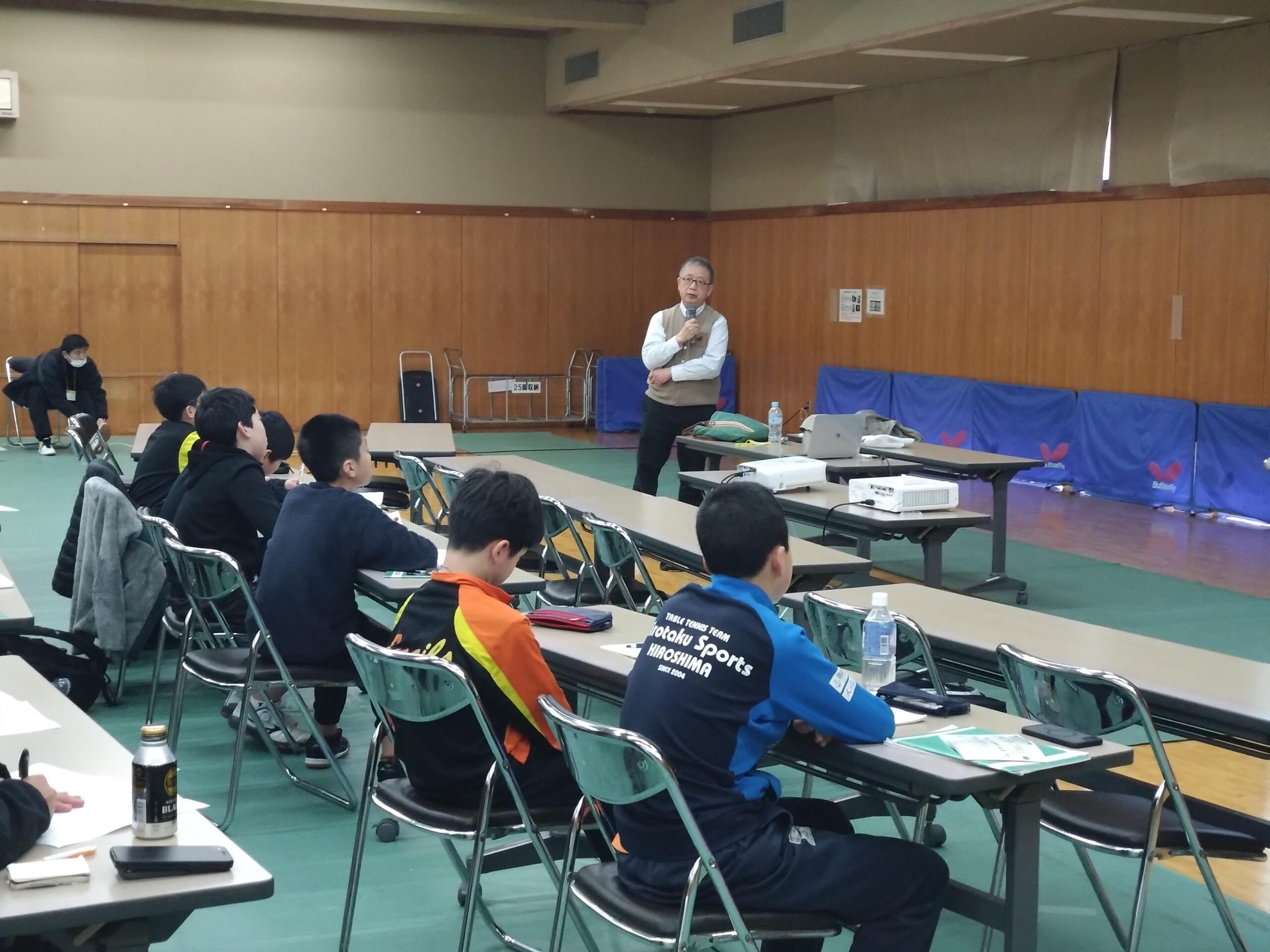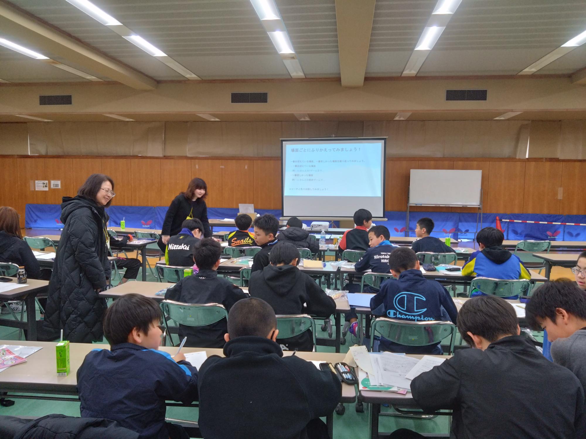 男子ホープス・カブ+指導者研修研修合宿事業では、2025年全日本卓球選手権大会(ホープス・カブ・バンビの部)の戦績によって選出された総勢18名が参加し、最終順位決定までの試合を行いました。そして、1位が来年度の世界ユースU-15日本代表選考会への出場権を獲得しました。