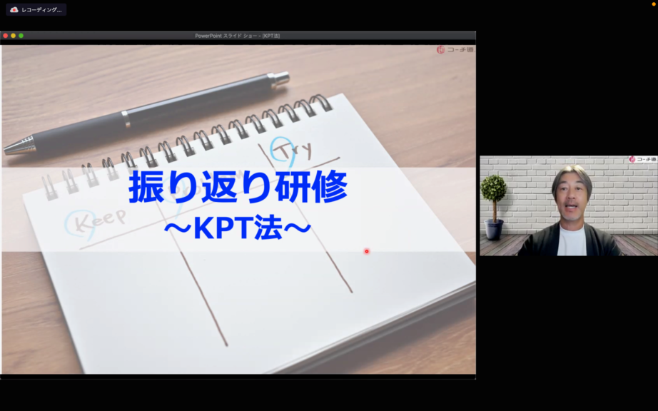 振り返り研修ではKPT法が利用されました。KPT法はKeep(よかったことなどを続ける)、Problem(問題点・課題点をみつける)、Try(問題点・課題点に挑戦する)の3つの点から自身を振り返ることで課題や改善点を明確にするフレームワークです。