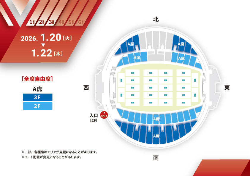 | 1月20日(火) | A席(一般自由席) | 1,600 | ◯ | ◯ |