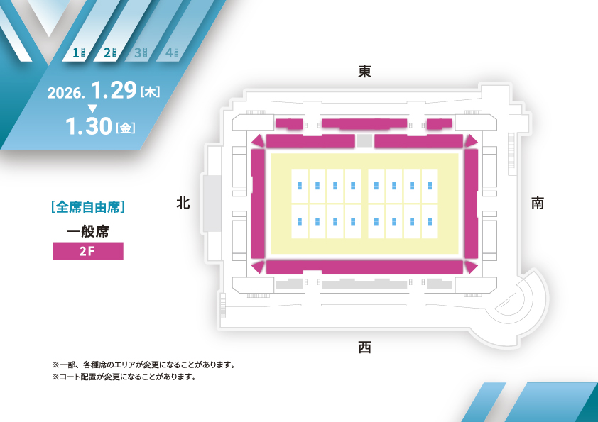 - 4.アリーナ席を除くお席での飲食は可能ですが、その際はまわりの他のお客様へのご配慮をいただきますようお願いいたします。