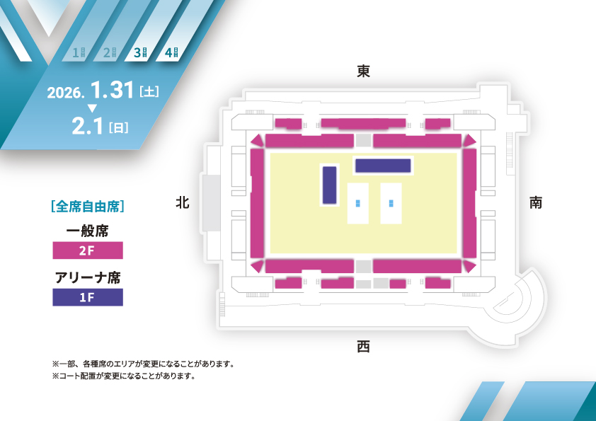 - 2.本大会に関係するマスメディアが観戦者の映像を記録し、使用することがあります。