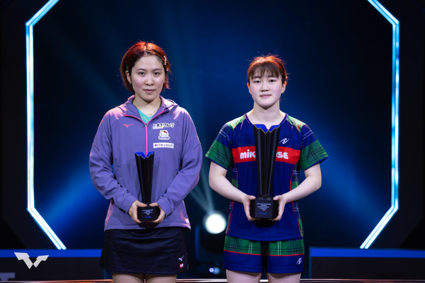 女子シングルス 優勝:大藤沙月(写真右)、準優勝:平野美宇(写真左)