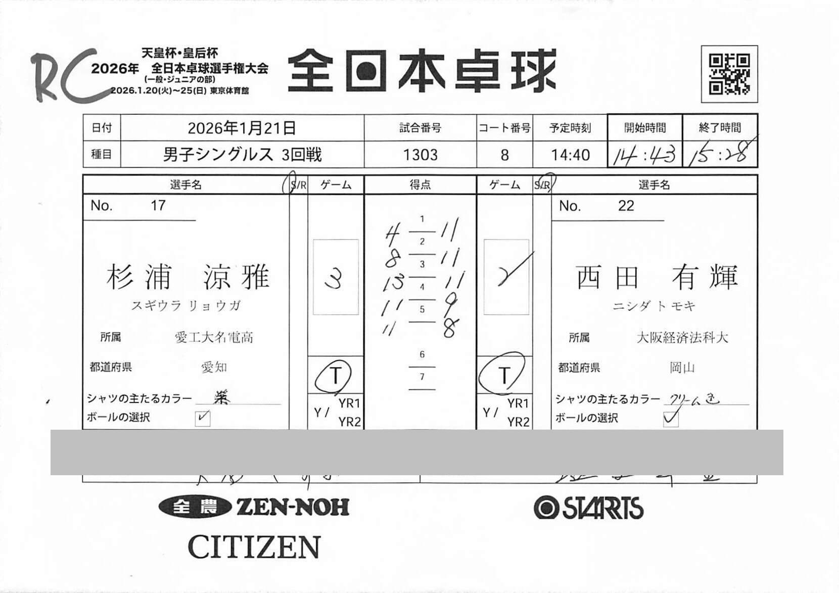 4回戦 | 試合ID : 1403 | |