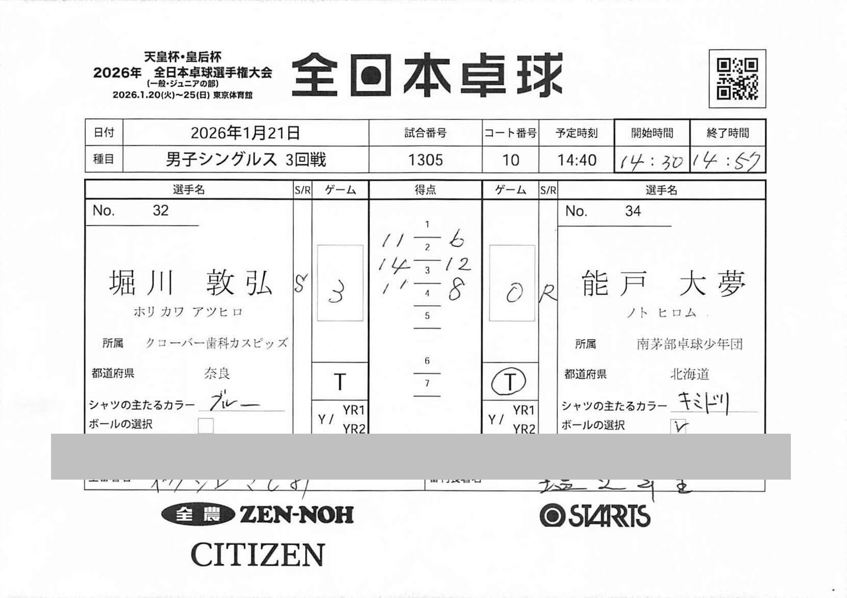 1回戦 | 試合ID : 1110 | |