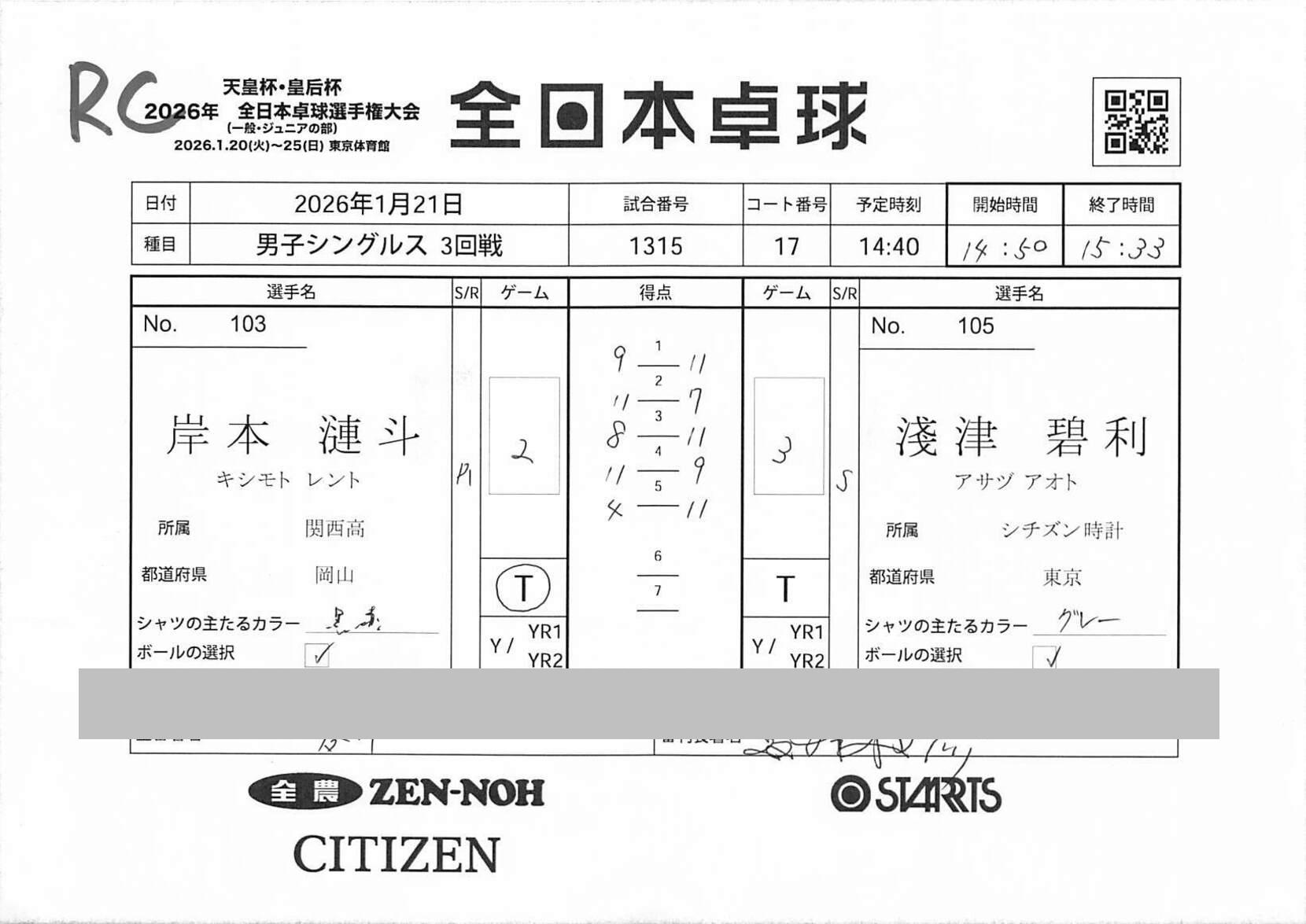 4回戦 | 試合ID : 1415 | |
