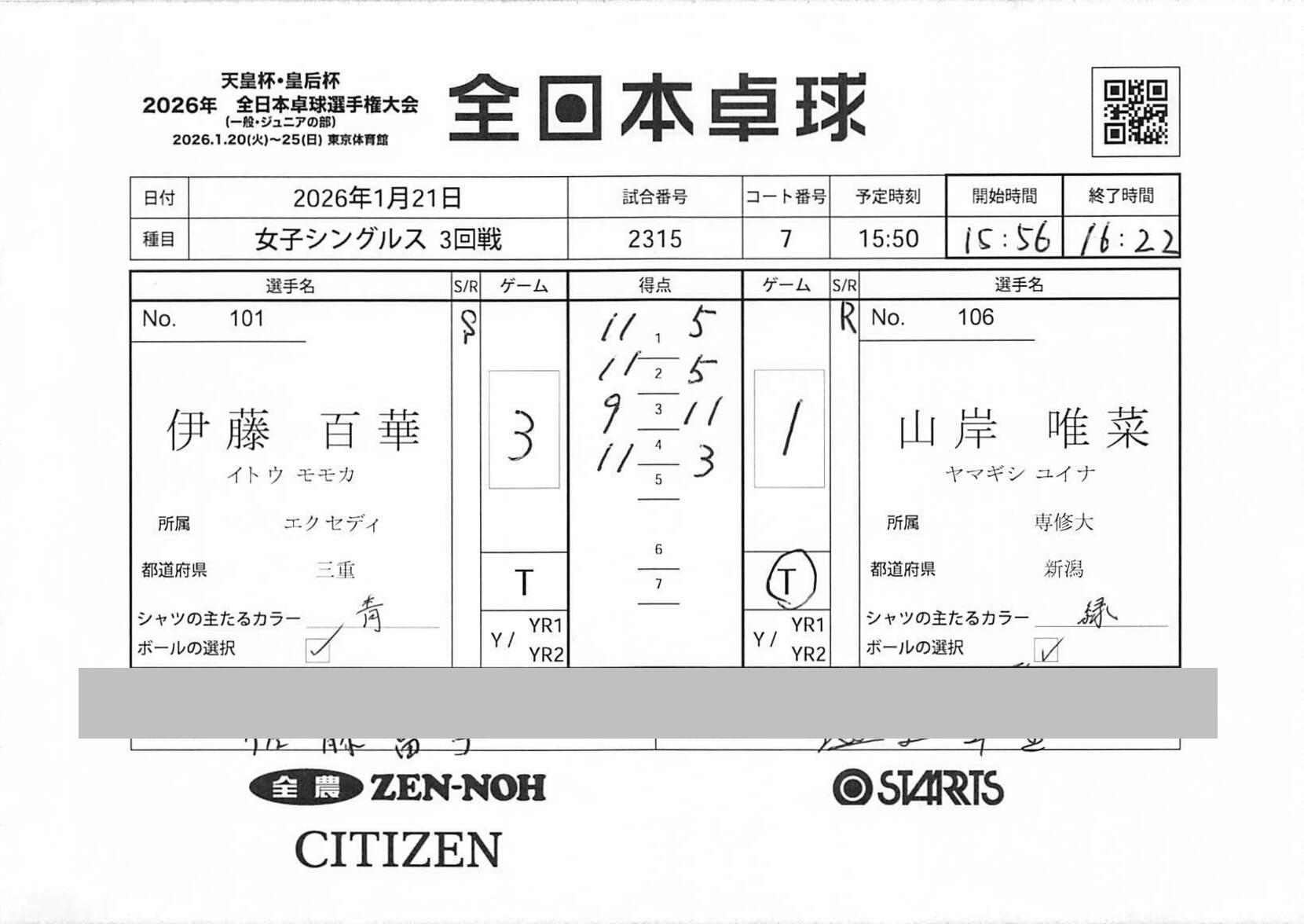 3回戦 | 試合ID : 2315 |