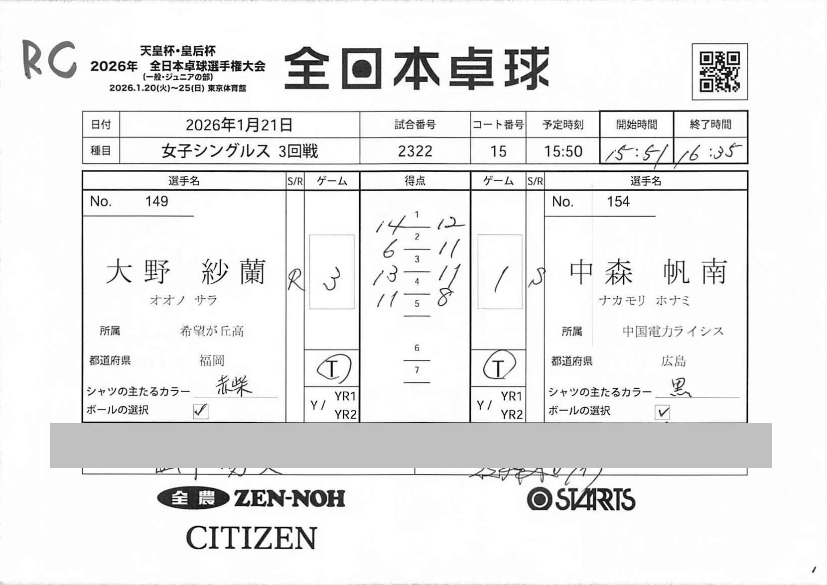3回戦 | 試合ID : 2322 | |