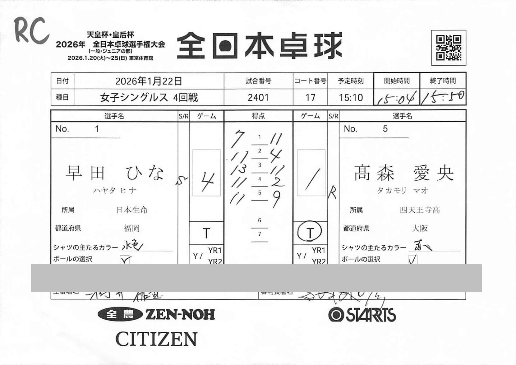 4回戦 | 試合ID : 2403 | |