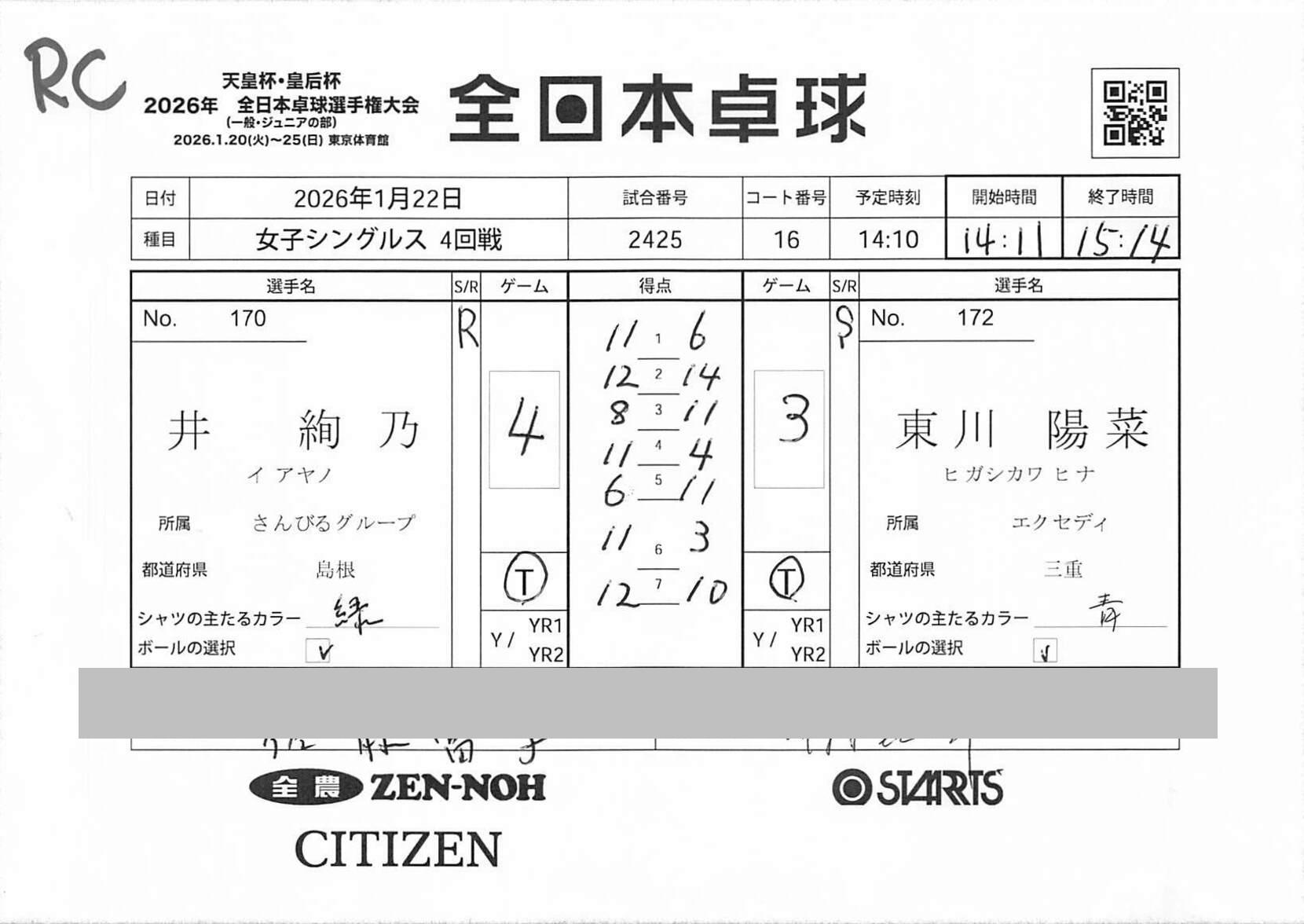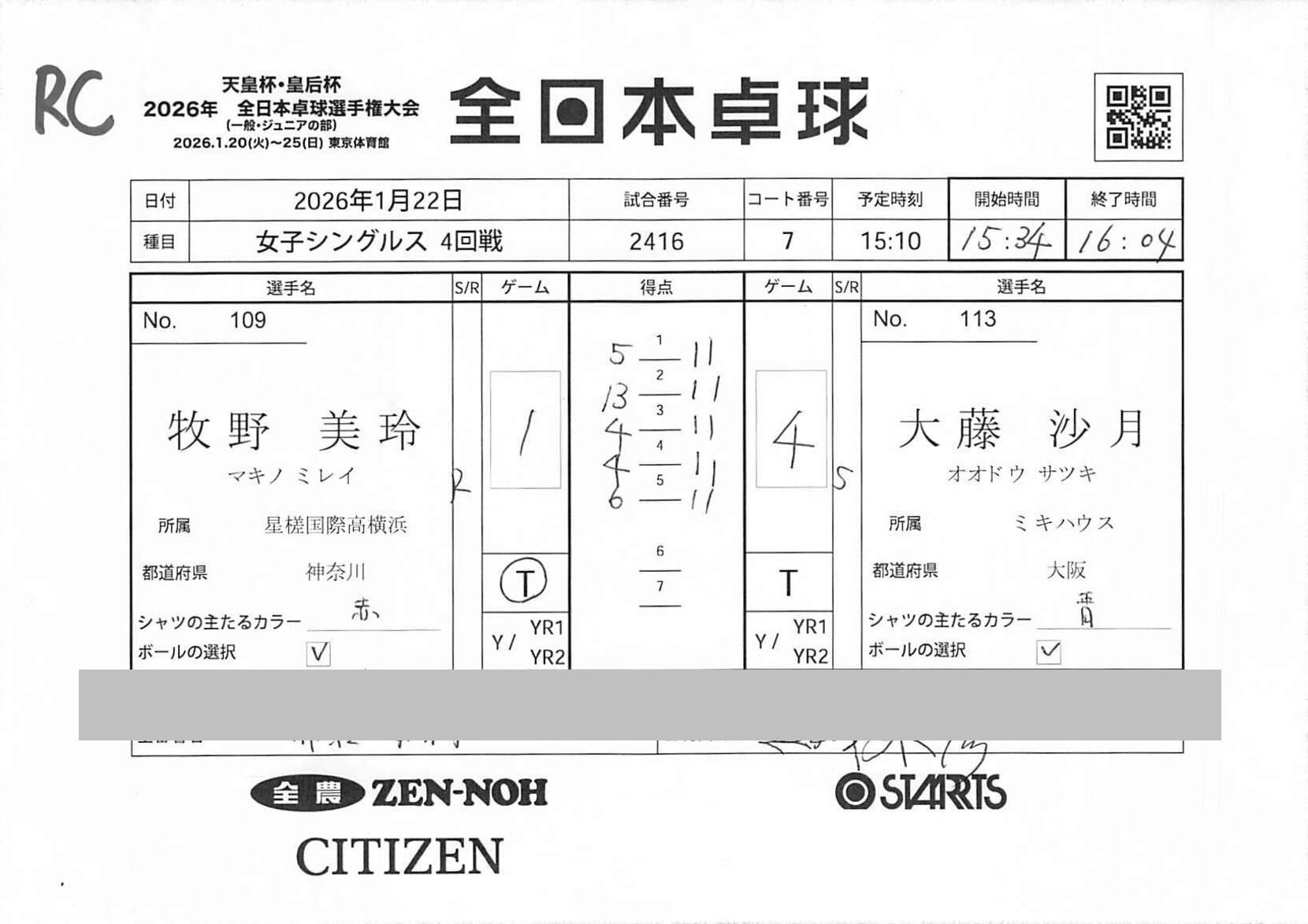 4回戦 | 試合ID : 2416 | |