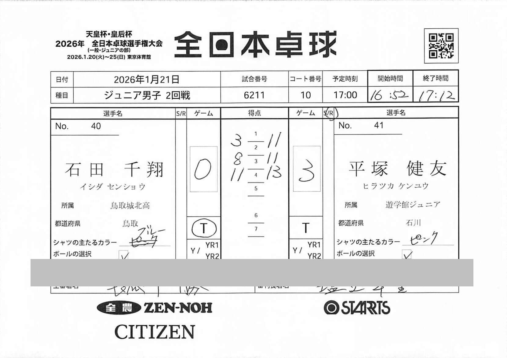 平塚 健友【遊学館ジュニア(石川)】