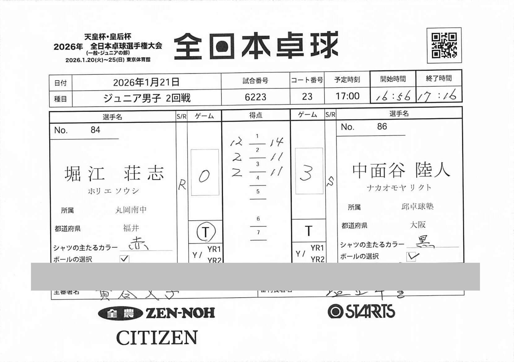 2回戦 | 試合ID : 6223 |