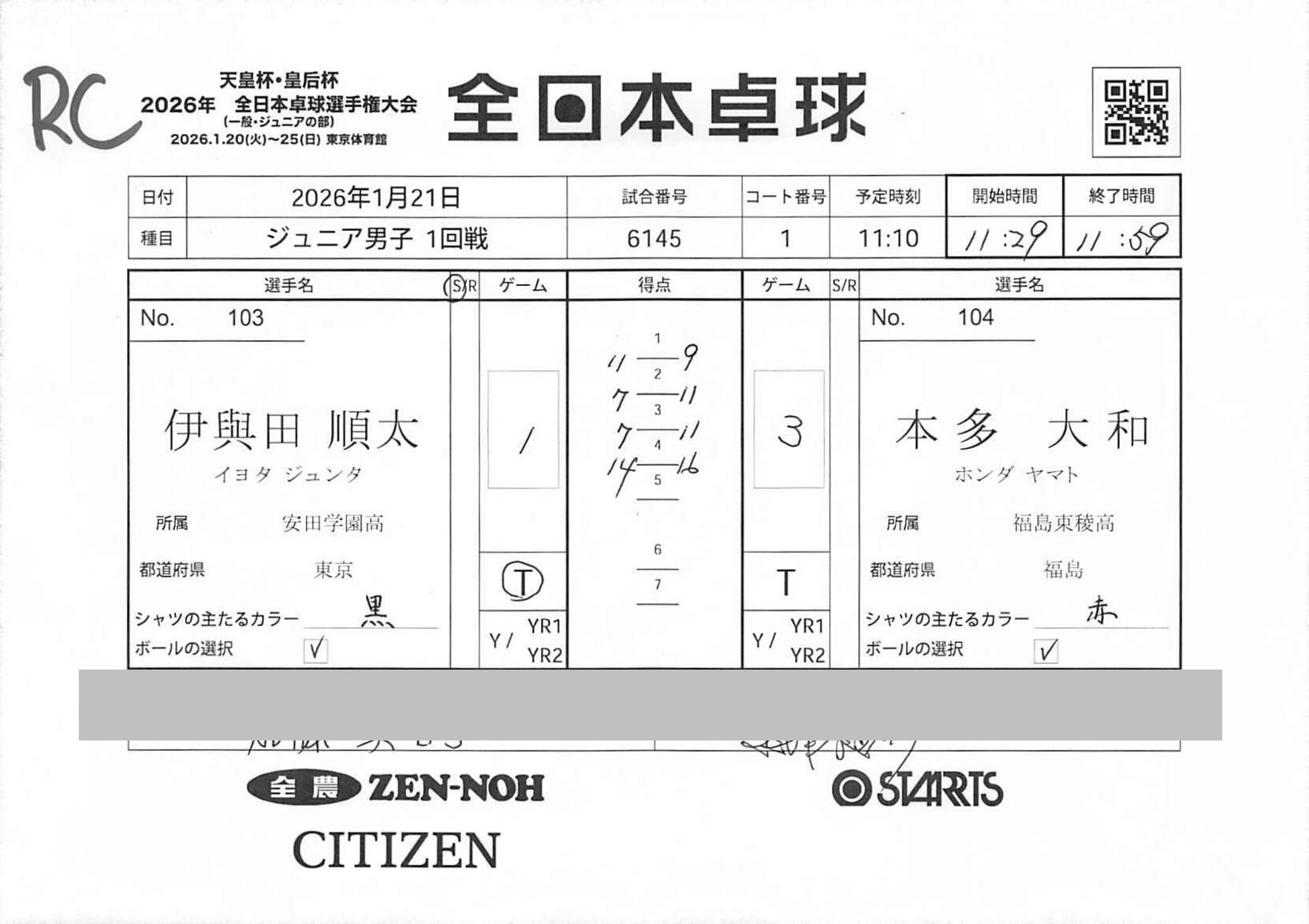 1回戦 | 試合ID : 6145 |