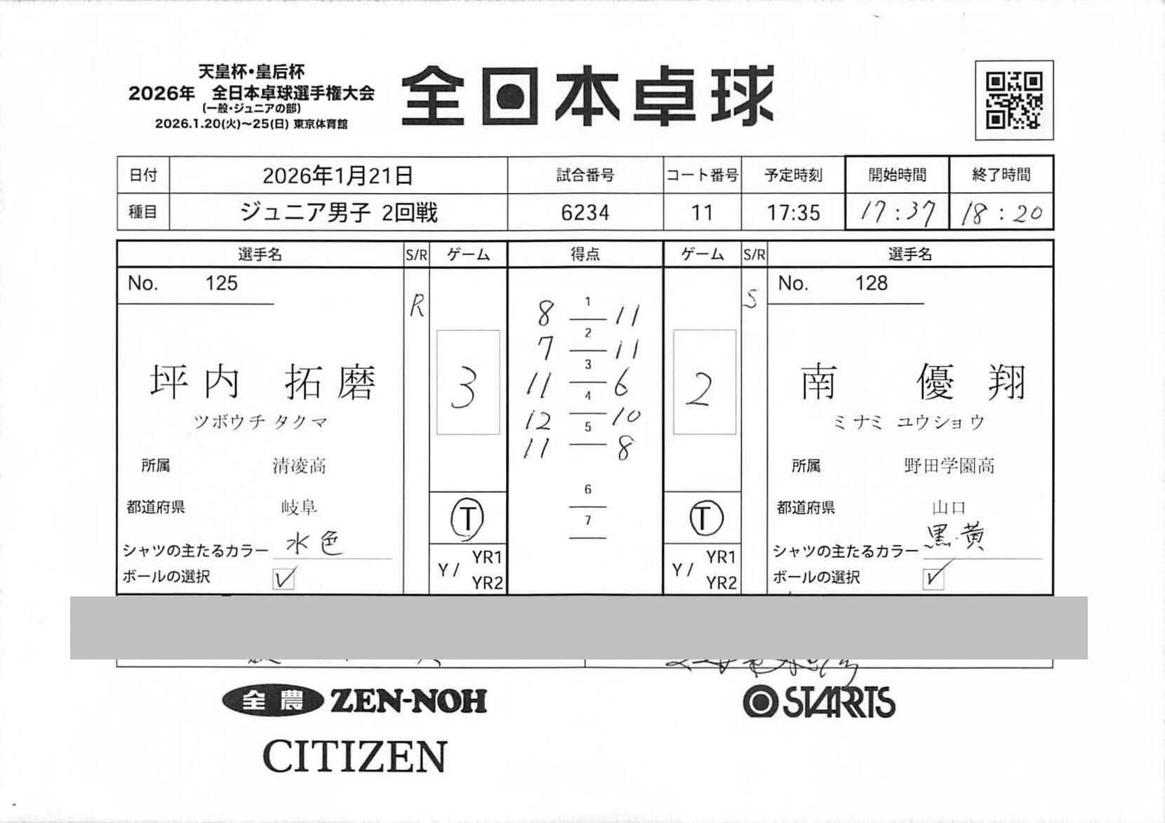 1回戦 | 試合ID : 6155 |