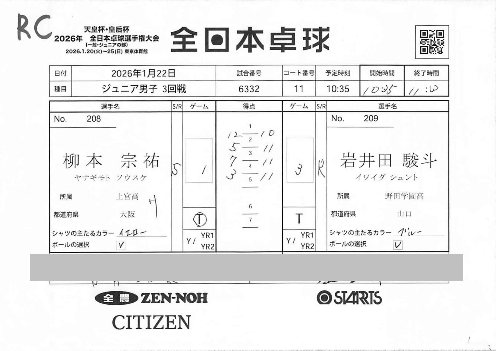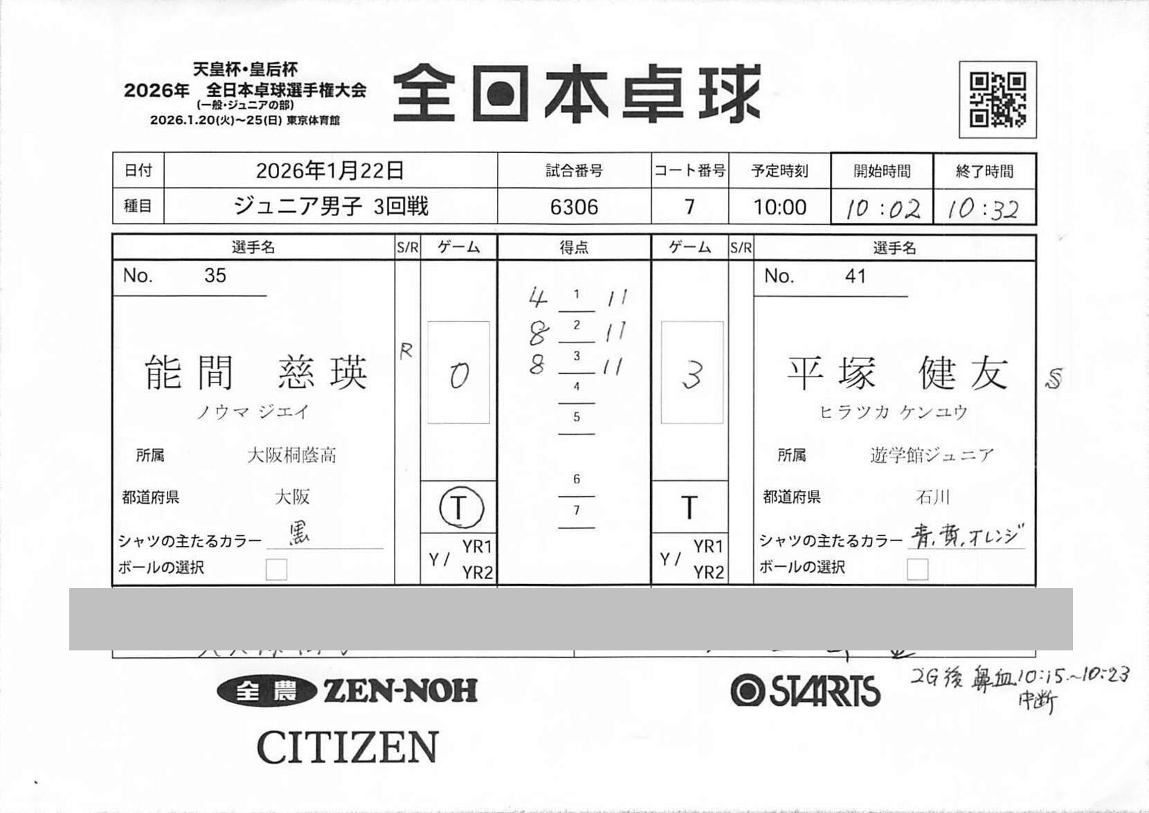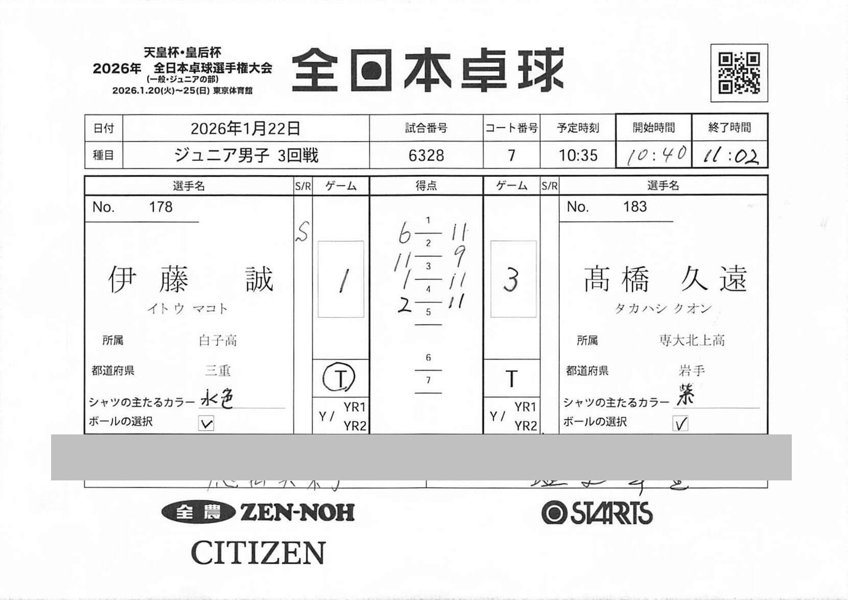 | 三好 蒼空【出雲北陵高(島根)】 | 11 | 8 | 11 | 6 | 11 | 2 |