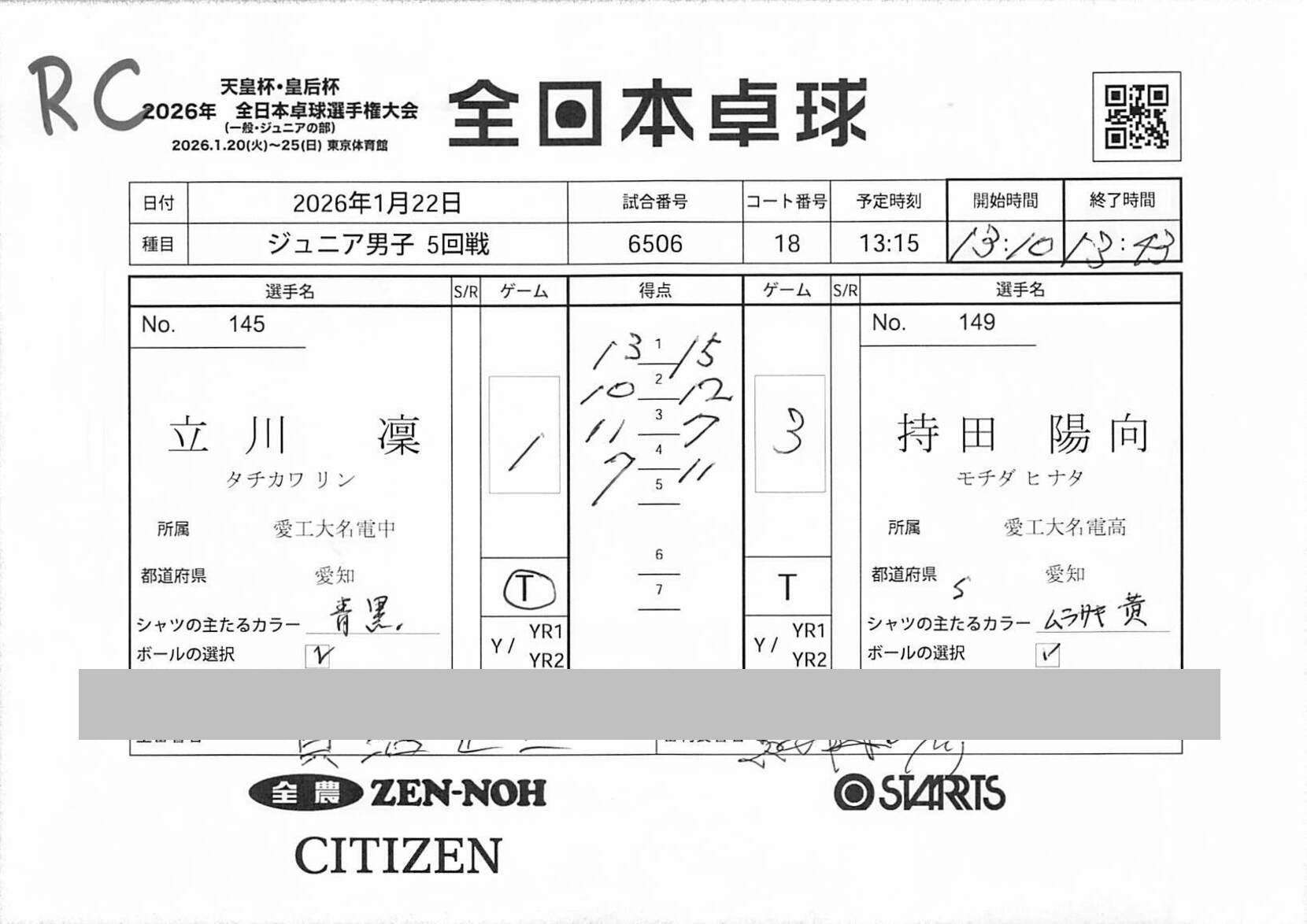 | 平塚 健友【遊学館ジュニア(石川)】 | 5 | 7 | 11 | 0 | ||