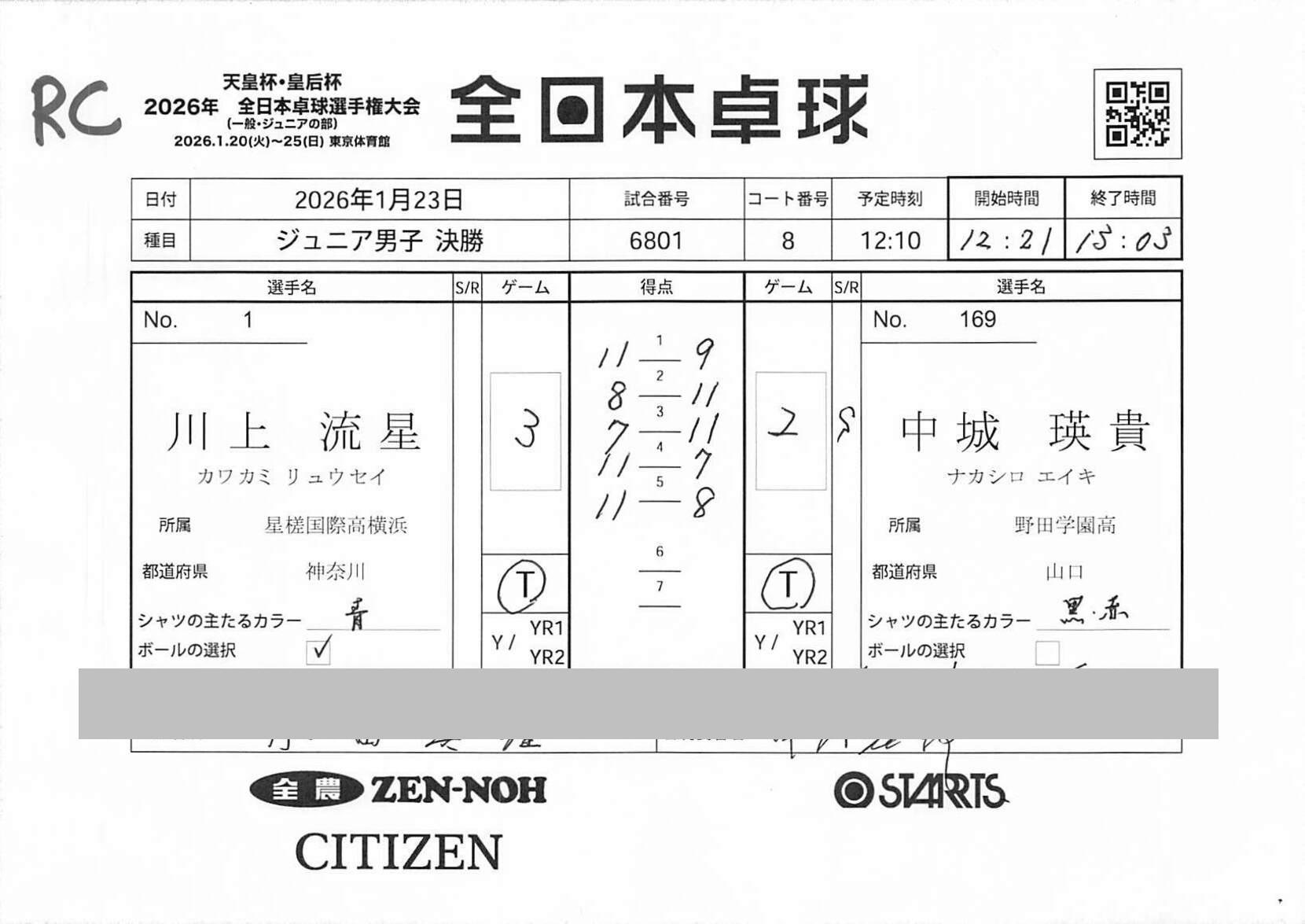 | 川上 流星【星槎国際高横浜(神奈川)】 | 11 | 8 | 7 | 11 | 11 | 3 |