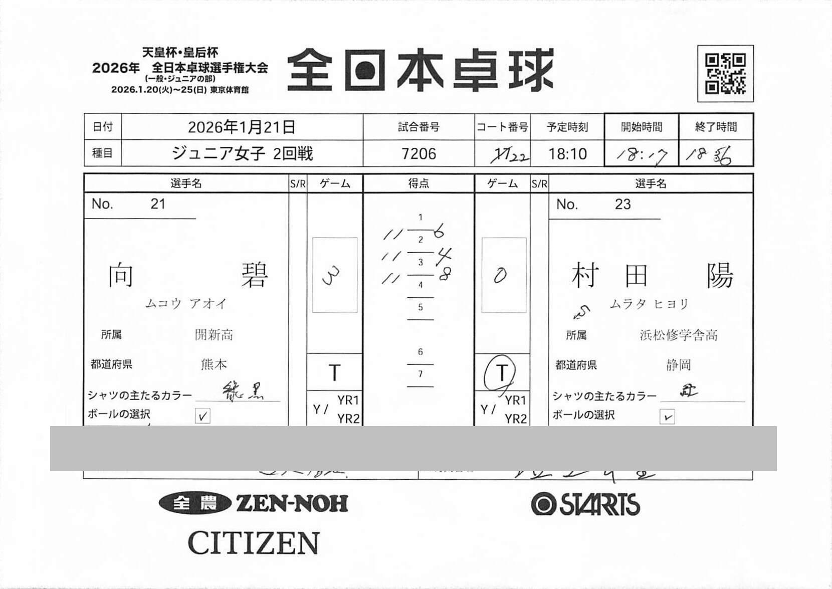 2回戦 | 試合ID : 7206 |