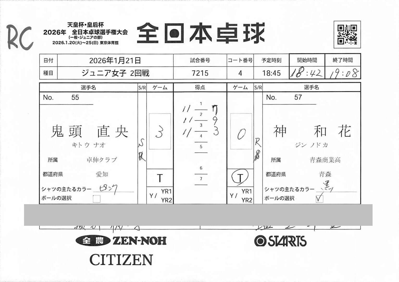 | 神 和花【青森商業高(青森)】 | 7 | 9 | 3 | 0 | ||