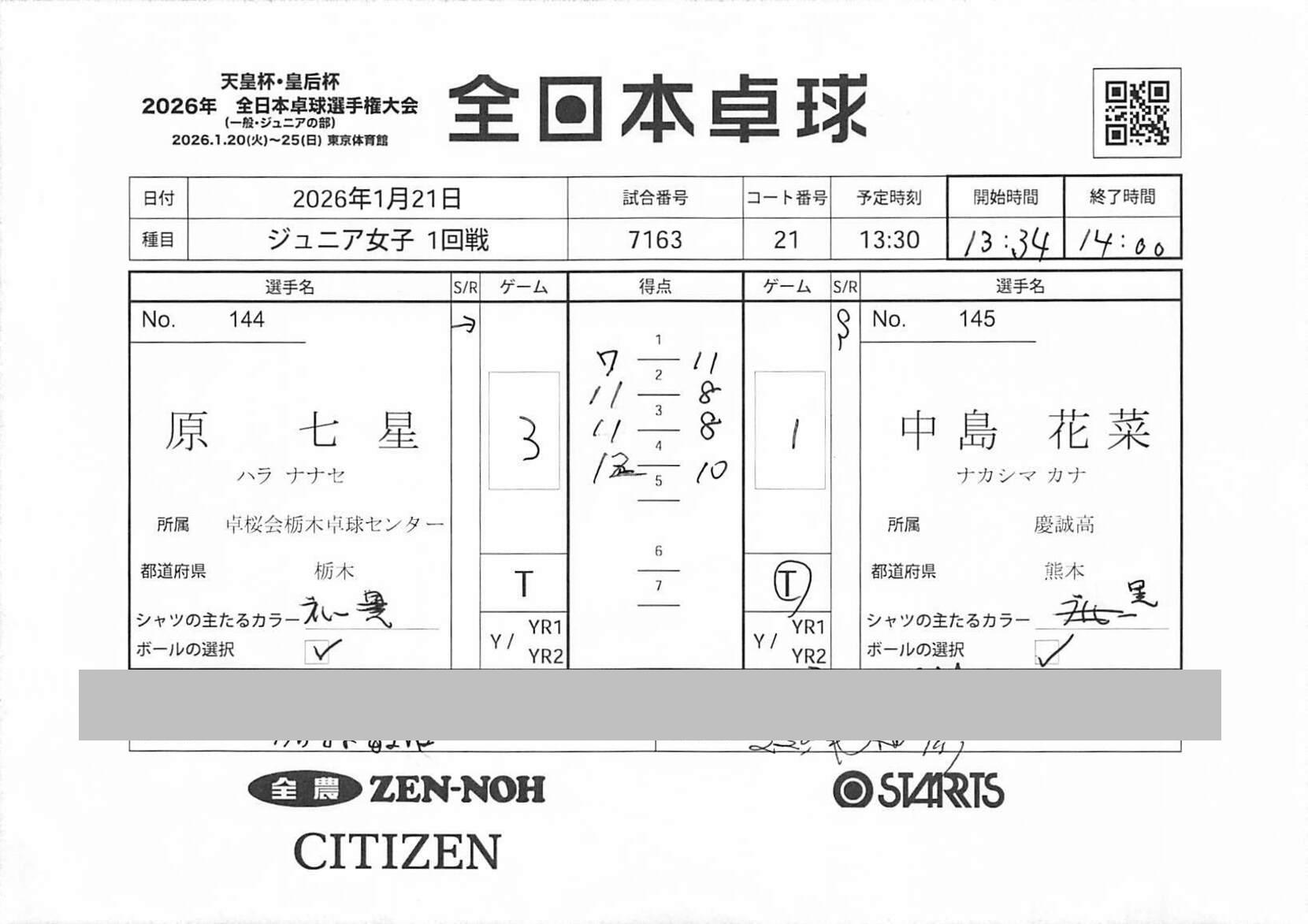 原 七星【卓桜会栃木卓球センター(栃木)】