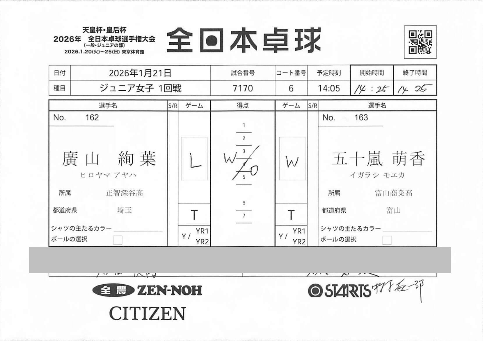 1回戦 | 試合ID : 7170 |