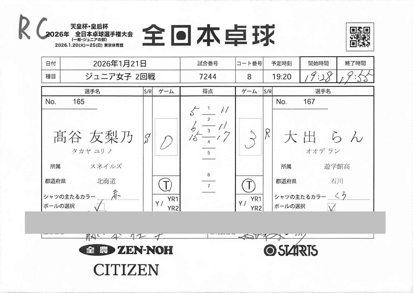 2回戦 | 試合ID : 7244 |