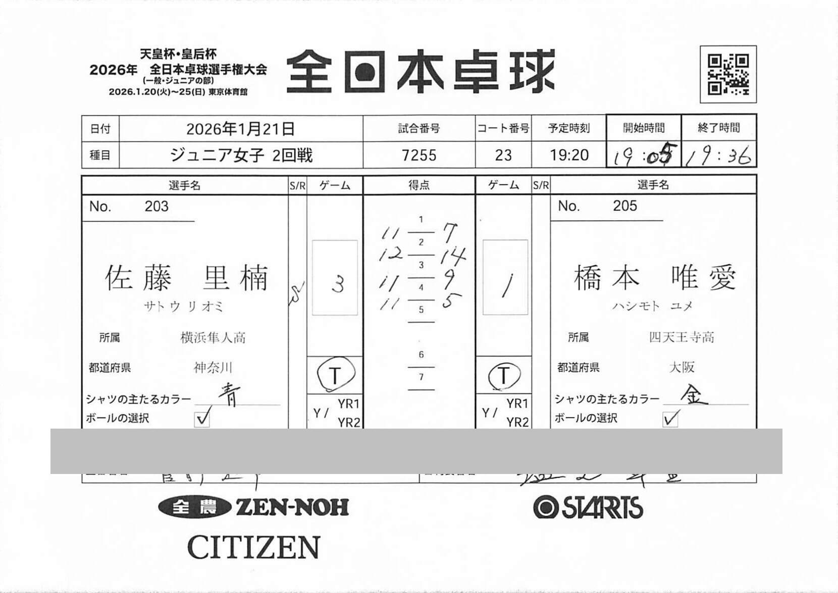 | 佐藤 里楠【横浜隼人高(神奈川)】 | 11 | 9 | 11 | 11 | 3 | |